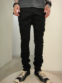 ストレッチ混の生地を使用し、製品洗いで仕上げた定番のサルエルスキニーパンツ。