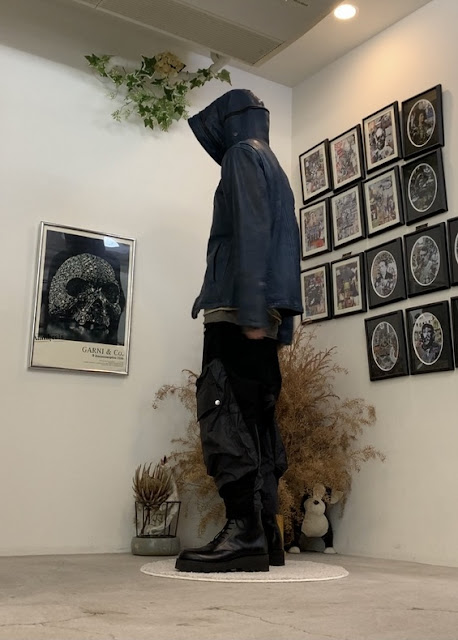 ・ボトムはA.F ARTEFACTのハリのあるコットン素材のアンクル丈サルエルワイドカーゴパンツ。内股、カーゴポケットはナイロン素材のコンビネーション。収納力抜群の立体的なカーゴポケットはジップポケットとフラップポケットの2重構造。