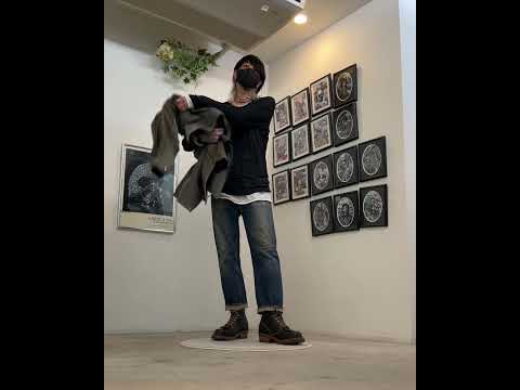 ・コートはWIZZARDの製品加工でフェード感を出した微起毛ツイル生地とナイロンリップストップのコンビネーションモッズコート。ハンターハイカージャケットをヒントにした襟は2重で内側の襟にはフードも収納されています。エイジング感ある仕上がりで両サイドにはファスナーを配置し開閉が可能。